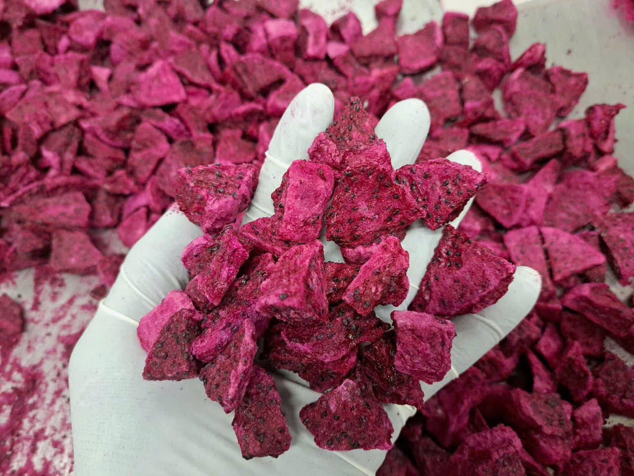 Freeze-dried dragon fruit is crafted from fully ripe, carefully selected fruits to ensure vibrant color and exceptional natural sweetness. Using advanced freeze-drying technology, the moisture is removed while preserving the fruit’s nutrients, aroma, and bright tropical flavor. The result is a crisp, airy texture that melts in your mouth with every bite. Rich in antioxidants, fiber, and essential vitamins, freeze-dried dragon fruit is both a healthy snack and a premium ingredient for various food applications. It can be enjoyed on its own or added to smoothies, yogurt, cereals, and bakery products for a colorful, nutritious boost.