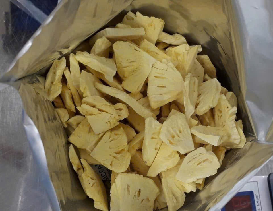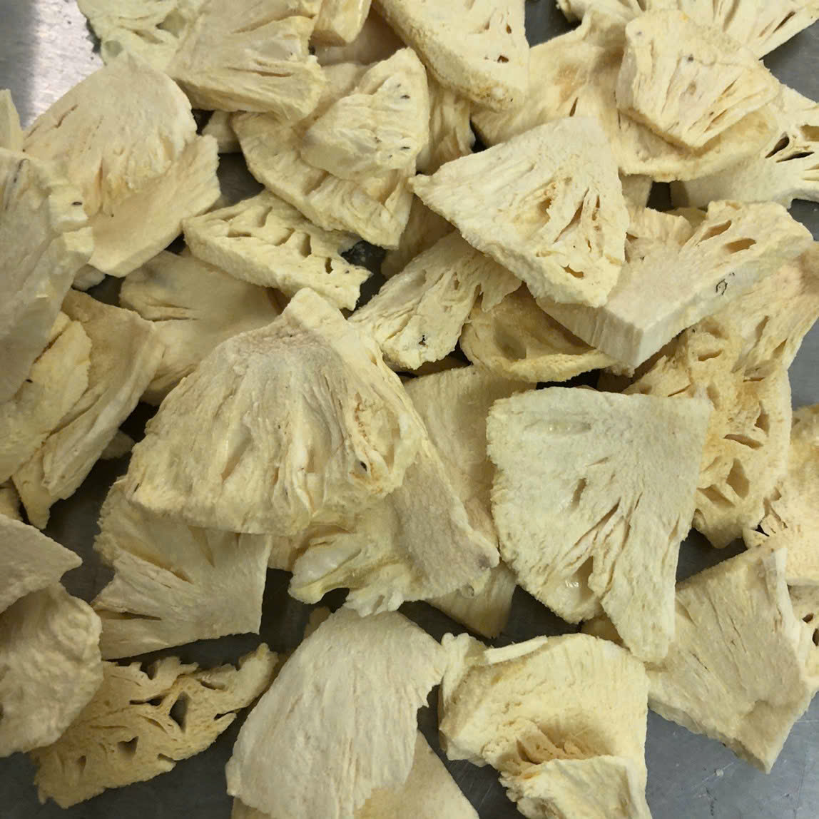 Freeze-dried pineapple is made from ripe, premium-quality pineapples that are gently processed using advanced freeze-drying technology. This method removes moisture while preserving the fruit’s natural sweetness, bright color, and rich tropical aroma. The result is a light, crispy texture with an intense, naturally tangy-sweet flavor. Packed with vitamin C, fiber, and antioxidants, freeze-dried pineapple is both a nutritious snack and a versatile ingredient. It can be enjoyed on its own or added to yogurt, cereals, smoothies, and baking recipes for a burst of tropical taste.